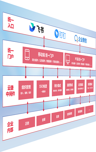 对协作平台提供支持服务,,,支持企业应用与协作平台对接,,,包含组织同步、、、消息集成、、、、待办集成等。。。支持目前主流的协作平台:钉钉、、、企微和飞书。。